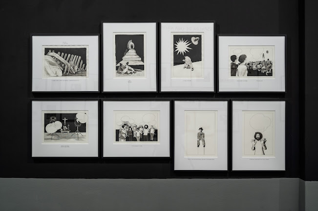 Conceived as a graphic novel, In the Belly of the Beast is added to the numerous works carried out under the heading David’s Tower, which adopted a variety of formats, including installations, sculptures and photographs, according to how they were displayed to the public. This exhibition includes not only the original drawings, but also a new museographic presentation that was conceived specifically for the Sala Miserachs.